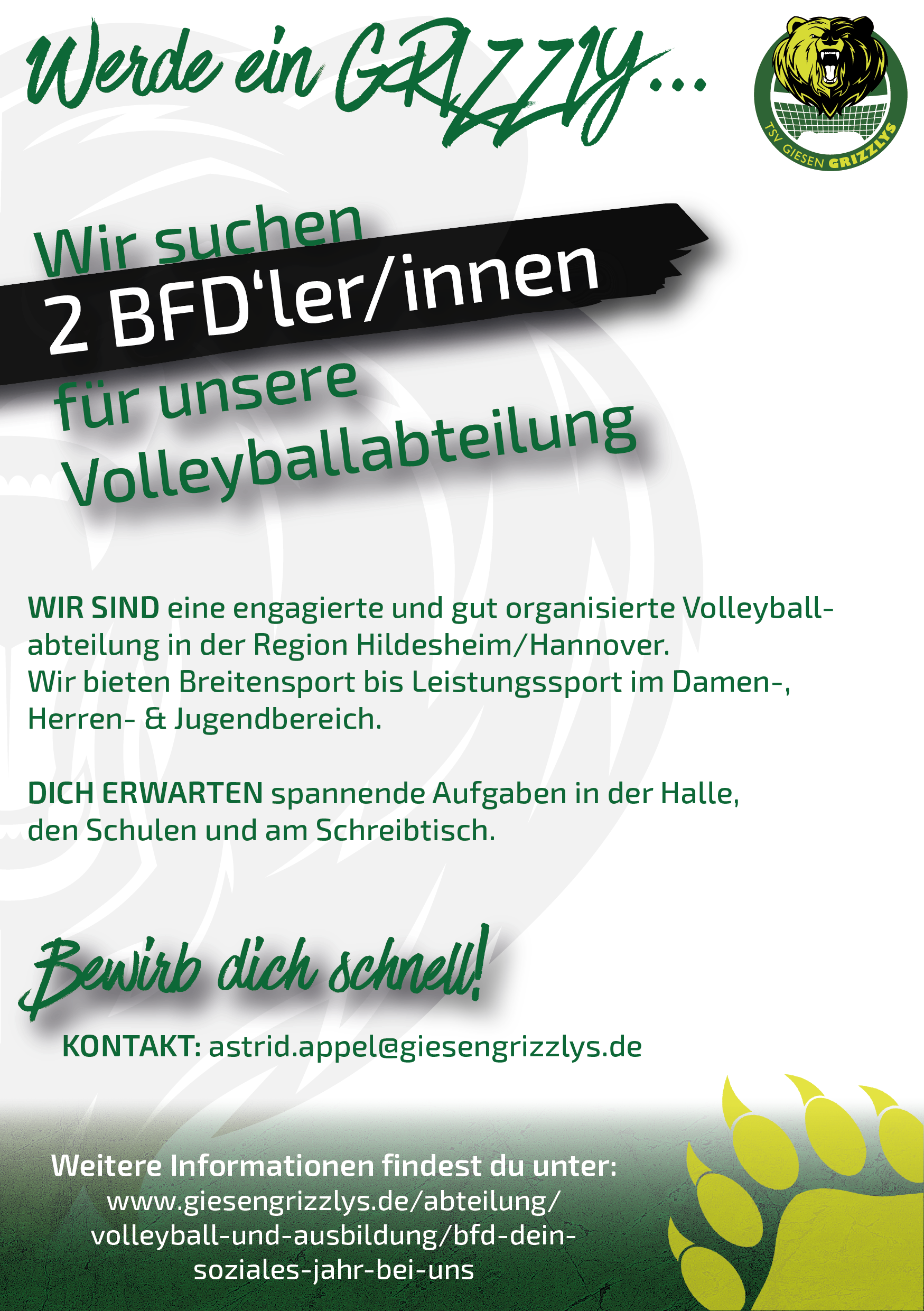 Diese Aufgaben erledigst Du natürlich zusammen mit dem großen Team der Volleyballabteilung und mit der Unterstützung Deiner Einsatzstellenleiterin, Astrid Appel.