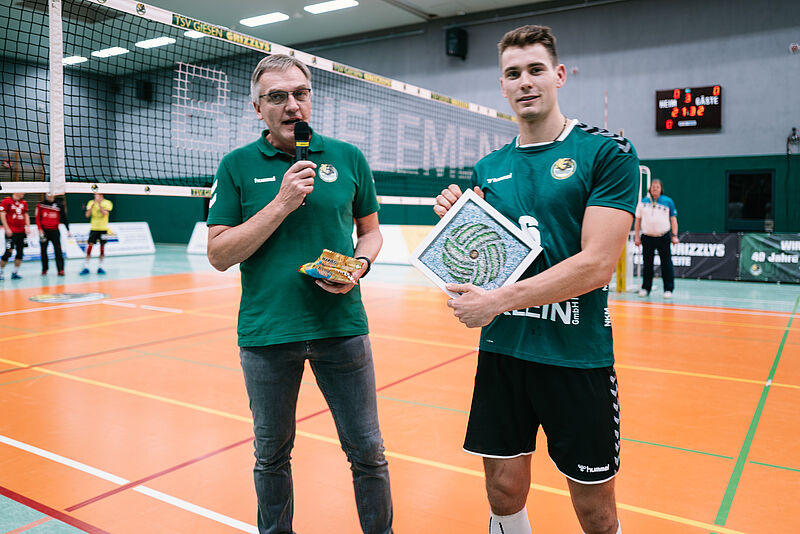 Alexander Grüne ist seit vielen Jahre in der Volleyballabteilung aktiv und aktuell Spieler der 2. Herren in der Dritten Liga. Er engagiert sich seit vielen Jahren in der Jugendarbeit und hat im letzten Jahr zusammen mit Martin Richter die Online Trainingsplattform „GRIZZLYS Academy“ realisiert. In diesem Frühjahr hat er die Aktion „Saubere Landschaft“ der GIESEN GRIZZLYS organisiert und ist ganz nebenbei noch Trainer der 1. Damenmannschaft. „Alex, wir freuen uns Dich bei uns in der Abteilung zu haben.“, so Abteilungsleiter Dr. Stefan Rössig bei der Preisübergabe.