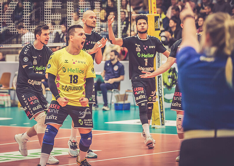 Bei den Gastgebern hat sich einiges zur neuen Saison getan. Nicht nur der Kader, sondern auch Trainer und Spielort der Häfler haben sich verändert. Problematisch vor allem der neue Austragungsort der Heimspiele für die Mannschaft aus Friedrichshafen, die nun in Ulm in der ratiopharm Arena stattfinden. Das bedeutet für die Spieler des süddeutschen Vereins, selbst eine Anreise von 90 Minuten zu jedem Heimspiel zu haben. Alles andere als optimale Voraussetzungen für einen Champions League Teilnehmer. Außerdem verabschiedeten sich nach der letzten Saison Linus Weber und Markus Steuerwald gleich zwei Leistungsträger die einen großen Anteil an dem Erfolg des letzten Jahres hatten. Nur fünf Spieler blieben dem Verein aus der letzten Spielzeit treu. Unter anderem der serbische Zuspieler Dejan Vincic, sowie Routinier und Mittelblocker Marcus Böhme. Die Häfler starteten zwar mit einem 3:1 Sieg gegen Lüneburg gut in die Saison, doch in den nächsten Spielen gegen Frankfurt, Berlin und Düren konnte man nicht punkten. Dann die Erlösung am vergangenen Wochenende, mit zwei wichtigen 3:0 Erfolgen. Vor allem der Sieg gegen die bisher gut spielenden Herrschinger war eine Machtdemonstration, auch wenn die WWK Volleys auf wichtige Spieler verletzungsbedingt verzichten mussten. Besonders gut funktionierten am Sonntag der Aufschlag und der Block. Somit konnte die Mannschaft aus dem Süden Deutschlands wieder Punkte auf die Konkurrenz gut machen und einige Ränge auf der Tabelle nach oben klettern.