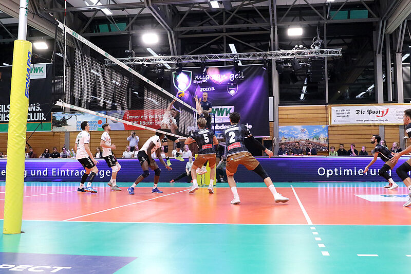 Phasenweise spielten die GRIZZLYS vor den knapp 1.000 Zuschauern im bayrischen Herrsching eindrucksvoll, so dass der etablierte Erstligist vom Ammersee nicht durchweg souverän agieren konnte. Nach spannenden 122 Minuten siegen die Gastgeber am Ende mit 3:1 (25:23, 25:21, 20:25, 25:20). Der erste Satz gestaltete bis zum Stand von 20:20 sehr eng. Keine der beiden Mannschaften konnte sich entscheidend absetzen. In der entscheidenden Phase schafften es die Herrschinger jedoch die GRIZZLYS immer wieder mit klugen Angriffsaktionen unter Druck zu setzen und profitierten von den Eigenfehlern der Gäste. Auch im zweiten Durchgang hielten die Giesener zunächst gut mit, doch Konzentrationsschwächen und leichte Fehler brachten die 2:0-Satzführung für die Bayern. Im anschließenden dritten Satz, zeigten die GRIZZLYS dann, dass sie sportlich mit etablierten Teams der 1. Volleyball Bundesliga gut mithalten können. Souverän hielten sie die Herrschinger auf Abstand und schafften den ersten Satzgewinn der noch jungen Saison. In dieser Phase zeigte der späterer MVP (wertvollster Spieler) auf Seiten der GRIZZLYS, Außenangreifer Jerome Clere, ein ums andere Mal seine enorme Sprungkraft und punktete nach Belieben. Leider konnte das Team von GRIZZLYS-Coach Itamar Stein diese starke Leistung nicht mit in den vierten Satz nehmen. Die Herrschinger drehten, lautstark unterstützt von Publikum und Hallensprecher, mehr und mehr auf. Gerade über ihre wuchtigen Mittelangreifer punkteten sie immer wieder. Die Giesener fanden bis zum Ende der Partie kein Mittel mehr gegen die erfahrenen Gastgeber und mussten somit punktlos die Heimfahrt antreten.