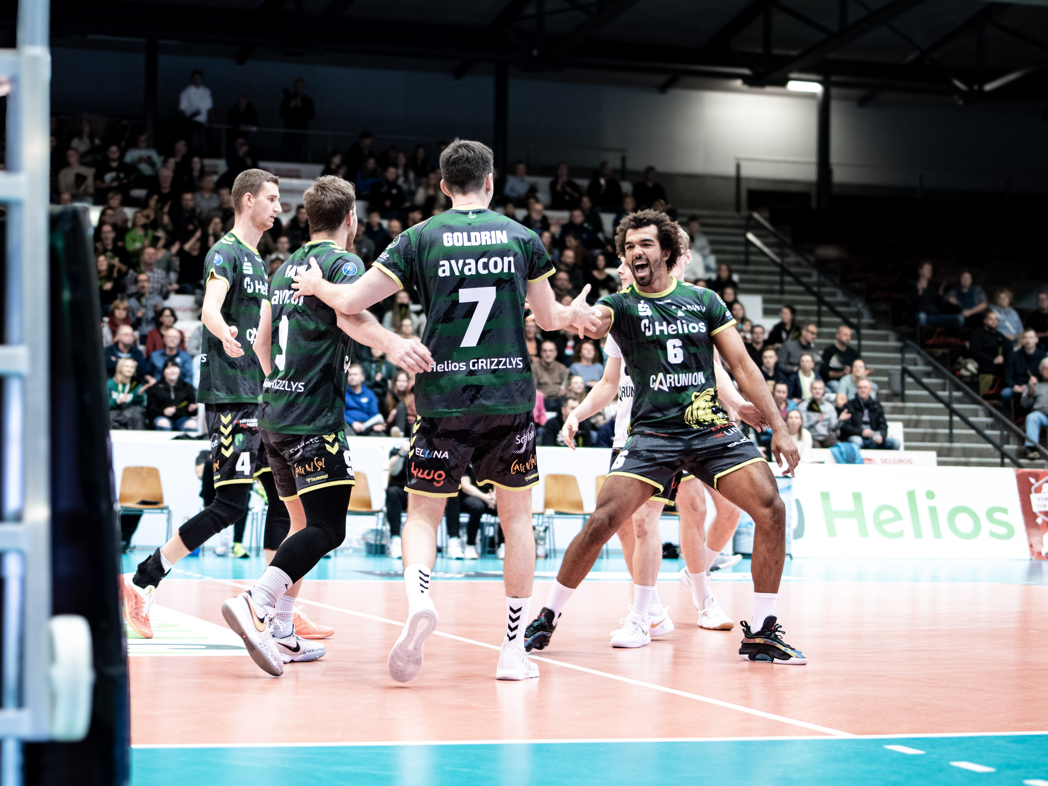 Viel Aufschlagdruck auf Seiten der GRIZZLYS und viele Eigenfehler der Gäste aus Bitterfeld prägten den ersten Satz. Der VC Bitterfeld-Wolfen fand nur langsam in die Partie und so nutzen die GRIZZLYS den zweiten von 16 Satzbällen zum 25:9 im ersten Durchgang. Auch in Satz Nummer 2 zeigten die Gastgeber, vor gut aufgelegten 1150 Zuschauern, eine gute und geschlossene Mannschaftsleistung, doch die Bitterfelder schienen langsam aufzuwachen. Gerade im Aufschlag, aber auch mit klugen Lösungen im Angriff, erspielten sich die Bitterfelder deutlich mehr Punkte als im ersten Satz, konnten jedoch die 2:0-Satzführung der GRIZZLYS nicht abwehren.Nach der traditionellen 10-Minutenpause in der Hildesheimer Volksbank-Arena kamen die Gäste deutlich fokussierter und mit mehr Mut wieder zurück aufs Feld und das zeigte Wirkung bei den GRIZZLYS. Gerade im Angriff leistete sich das Team von GRIZZLYS-Cheftrainer Itamar Stein nun zu viele Fehler und auch die Angriffe platzierten sie nicht mehr so effektiv im Feld der Bitterfelder. Mitte des Satzes zogen dann folgerichtig die Gäste mit 16:9 davon. Zwar konnten die Giesener den Rückstand verringern und schafften bei 24:24den Ausgleich. In einem engen Satzfinale setzen sich die Bitterfelder denkbar knapp mit 28:26 durch und schafften damit den Satzgewinn gegen die favorisierten GRIZZLYS. Der vierte Durchgang gestaltete sich enger als die vorangegangenen. Bis zum Stand von 19:20, da kam Ilya Goldrin an die Aufschlagline und startete eine starke Serie zum 23:20. Den finalen Durchgang beendeten die GRIZZLYS dann mit 25:22. Zum MVP der Partie wurde der stark aufspielende Außenangreifer Ilya Goldrin gewählt. Auch Maciej Borris, konnte gegen Bitterfeld-Wolfen seine Saisonpremiere feiern und absolvierte gute zwei Sätze auf der Mittelblockerposition.
