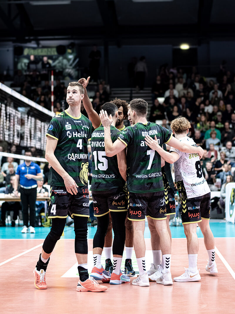 Im ersten Satz mussten die GRIZZLYS lange einemRückstand hinterherlaufen. Zwischenzeitlich lagen die Gastgeber sogar mit 11:16 hinten. Erst in der Crunchtime des ersten Durchgangs konnten die GRIZZLYS wieder aufschließen. Zum Ende des Satzes zeigte der eingewechselteJan Röling seine Aufschlagqualitäten. Und schlussendlich vollendete Fedor Ivanov mit einem ASS den zweiten Satz. Satz Nummer 2 gestalteten die beiden Teams zu Beginn eng, bis Herrsching Mitte des Satzes mit 4 Punkten in Führung gehen konnte. Die GRIZZLYS kamen zum Satzende noch einmal zum Ausgleich (23:23). Dann führte ein Fehlaufschlag von GRIZZLYS-Zuspieler Fedor Ivanov zum Satzball für Herrsching und ein knapper Angriff ins Aus von GRIZZLYS-Angreifer Iliya Goldrin beendete den Durchgang. Damit konnten die Gäste nach Sätzen zum 1:1 ausgleichen. In Durchgang Nummer 3 konnten sich die GRIZZLYS zum 4:2 eine erste Führung herausspielen. Die WWK Volleys konnten anschließen zum 5:5 ausgleichen und sicherten sich dann sogar die 5:6-Führung. Die GRIZZLYS wirkten in dieser Phase des Spiels etwas unkonzentriert, doch auch dieHerrschinger zogen nicht weiter davon. Der dritte Durchgang entwickelte sich zu einem echten Kopf-an-Kopf Rennen. Keine Mannschaft konnte sich bis zum 23:23 absetzen. Bei diesem Spielstand kam Michiel Ahyi zum Aufschlag und sicherte anschließend stark im Hinterfeld. Außenangreifer Lorenz Karlitzek versenkte einem krachenden Angriff und erspielte damit einen Satzball für die GRIZZLYS, den Michiel Ahyi dann mit einem Ass verwandeln konnte. Im vierten Satz führten die Gastgeber schnell mit 4:0-Punkten nach starken Aufschlägen von GRIZZLYS-Außenangreifer Iliya Goldrin. In den folgenden Minuten steigerte sich Herrsching vor allem in der Block-Feldabwehr und die GRIZZLYS konnten nicht mehr alle Angriffe effektiv im Feld unterbringen. Damit erspielten sich die WWK Volleys eine 2-Punkteführung zumStand von 6:8. Nach mehrfachen Führungswechseln im Verlaufe des Satzes Nummer vier. Keines der beiden Teamskonnte sich deutlich absetzen bis zum Stand von 19:22 für die Gäste. Die WWK Volleys Herrsching konnten diesen Vorsprung bis zum Satzgewinn mitnehmen und der vierte Durchgang endete mit 21:25 für die Herrschinger. Damitmusste der Tiebreak entscheiden. Vor 2422 Zuschauern setzendie Gastgeber nochmal alles auf eine Karten und starten mit einem „8:0 Run“. Stark Aufschläge von Iliya Goldrin und Mich Ahyi besiegeln einen herausragenden Tiebreak. Mit 15:2 Punkten sicherten sich die GRIZZLYS damit den Sieg in einem spannenden Bundesligaspiel. Zum wertvollsten Spieler der Partie wurde GRIZZLYS-Diagonalangreifer Michiel Ahyigewählt.