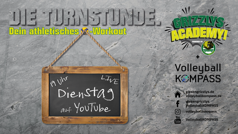 Die Turnstunde - Dein athletisches Volleyball-Workout geht auch im Neuen Jahr 2021 weiter. Die GRIZZLYS, unter Anleitung von Martin Richter, Alexander Grüne und Dania Hollemann, trainieren und schwitzen weiter digital. Sie haben sich zum Jahreswechsel mit dem TV Rottenburg abgestimmt, die ein ähnliches, digitales Trainingsformat angeboten hatten. Um sich zukünftig gegenseitig zu ergänzen und weniger Konkurrenz zu machen, sendet die GRIZZLYS ACADEMY in 2021 ausschließlich dienstags um 19Uhr live und der TV Rottenburg mit seinem digitalen Format TVRMotion wird alle Sportbegeisterten donnerstags ab 19Uhr auf twitch bewegen. Darüber hinaus wird die GRIZZLYS ACADEMY jedoch weitere digitale Trainingsformate bspw. für Jugendliche oder aber für die Bereiche Reaktions- und Sprungkrafttraining anbieten. Seid gespannt und macht mit! Das Training ist nicht nur für Volleyballer, sondern hält auch alle anderen Sportler athletisch fit. Die Informationen zum digitalen Training der GRIZZLYS gibt es unter www.giesengrizzlys.de/academy
