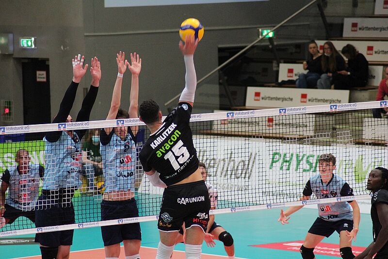 Bevor die GRIZZLYS in knapp zwei Wochen in die Bundesligasaison starten, konnte Itamar Stein bei der samstäglichen Partie taktisch viel ausprobieren und auch gerade die Spieler, die erst seit wenigen Wochen oder Tagen in Hildesheim sind, im Zusammenspiel mit den eingespielten Teilen des Teams sehen. In den ersten Satz starteten die Giesener mit Jan Röling, Lorenz Karlitzek, Magloire Mayaula, Jean-Philippe Sol, Stijn van Tilburg, Augusto Renato Colito und Libero Milorad Kapur. Mit dieser Aufstellung konnten sich gleich drei der vier Neuzugänge den Zuschauern in der Volksbank-Arena Hildesheim präsentieren. GRIZZLYS-Coach Itamar Stein konnte mit der Anfangsphase des Spiels sehr zufrieden sein, denn seine Mannschaft spielte schnell einen 4-Punktevorsprung heraus. Gerade der druckvolle Aufschlag und klar schnell herausgespielte Angriffsaktionen brachten die GRIZZLYS in eine gute Ausgangsposition für die heiße Phase des ersten Durchgangs. Die spektakulärste Szene des ersten Satzes entstand nach einem starken Sprungaufschlag von Lorenz Karlitzek, der den Gästen Annahmeschwierigkeiten bereitete und eine risikoreiche Rettungsaktion provozierte, die für einen Spieler der Gäste schmerzhaft in der Auswechselbank endete. Nach diesem kurzen Schockmoment konnte der belgische Spieler jedoch weiterspielen. Nach nur 20 Minuten Spielzeit nutzen die Gastgeber direkt den ersten Satzball und beendeten Satz 1 mit einer 8-Punkteführung mit 25:17.
