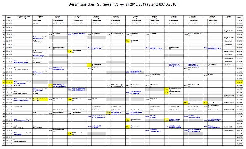 Nach einigen Anpassungen aufgrund von restlichen Spielverlegungen, konnten wir jetzt auch den aktuellen Gesamtpielplan aller Mannschaften erfolgreich zusammenstellen.