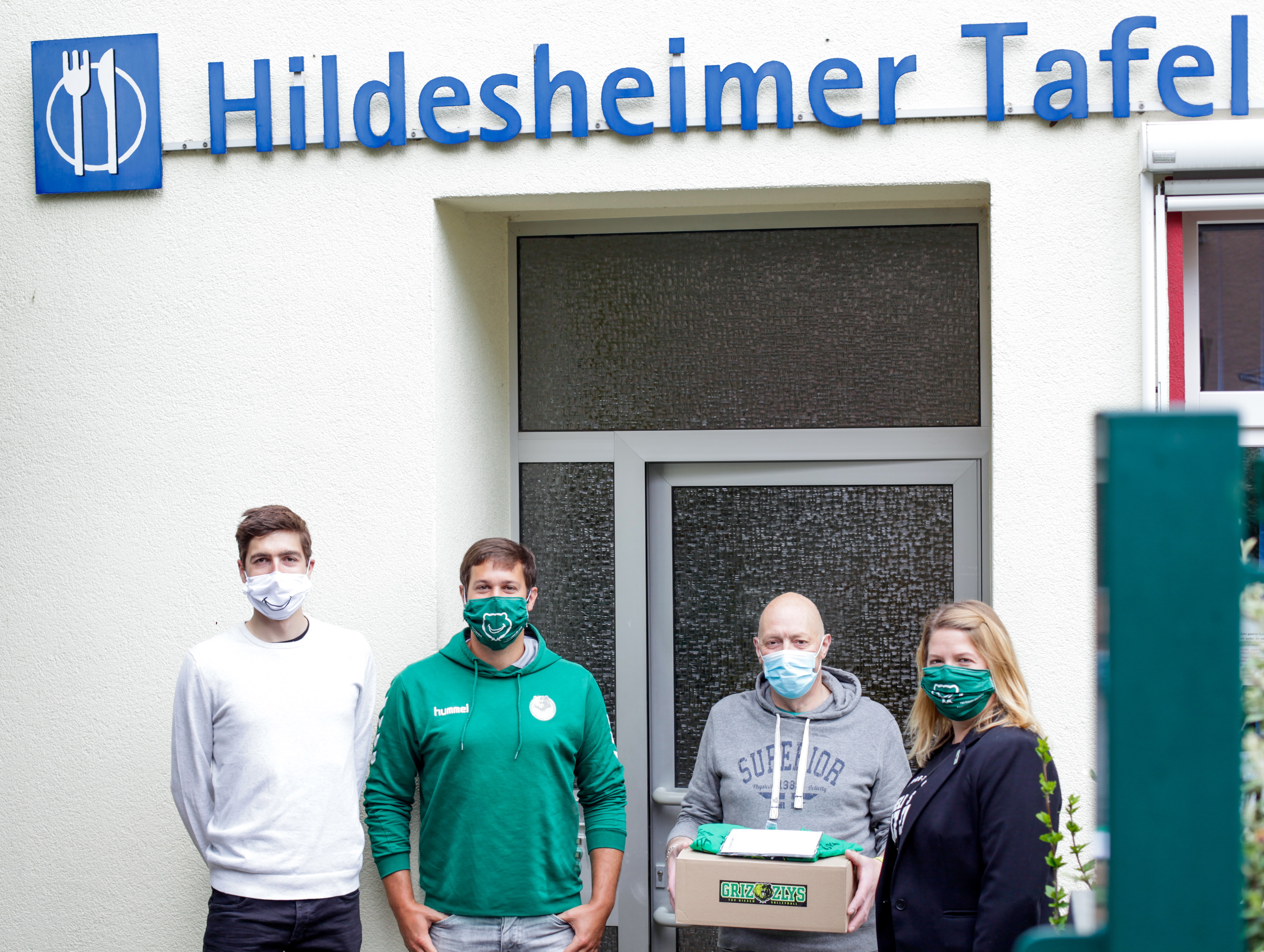Auf Anregung von smile2protect, unserem Partner zum Thema Gesichtsmasken, die gute Kontakte zur Hildesheimer Tafel unterhalten, wurden die im Beisammensein von Florian Ahrens (smile2protect/TSV Giesen GRIZZLYS), Vanessa Persson (Helios GRIZZLYS) und Dominik Jennati (TSV Giesen GRIZZLYS) an Friedrich-Wilhem Fischer, Mitarbeiter der Hildesheimer Tafel übergeben.
