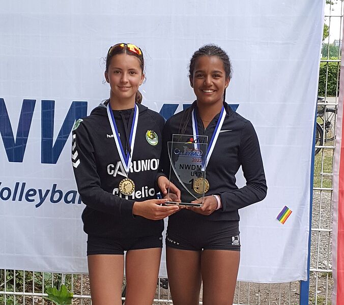 Bei den Mädchen war es Julie Klimm, die sich mit Ihrer Partnerin Luisa Durisova (BTS Neustadt) sensationell ins Finale spielte und dort gegen Ihre ehemalige Teamkollegin Lina Schoen mit Partnerin Greta Mohwinkel (SVG Lüneburg) die Oberhand behielt. Damit Gold für die GRIZZLYS Academy!