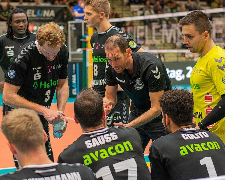 Die GRIZZLYS starteten wach und erfolgreich in den dritten Satz, schnell führten sie mit 4:1. Eine starke Aufschlagserie von Außenangreifer Romans Sauss brachte dem Gastgeber sogar eine 8:1 Führung ein. Während in den ersten beiden Sätzen die Frankfurter die langen Ballwechsel für sich entscheiden konnten, konnten nun die Niedersachsen diese Punkte auf ihrem Konto verbuchen. Die Giesener waren in Satz 3 auch wieder durchschlagskräftiger und konsequenter in Aufschlag und Angriff. Zwar kamen die Gäste zwischenzeitlich wieder etwas näher an die GRIZZLYS heran, gaben die Führung jedoch nicht mehr aus der Hand. Das Team von Itamar Stein blieb stabil und sicherte sich diesen spannenden und packenden Satz mit 25:21. Die 888 Zuschauer bejubelten ihr Team lautstark und echte Heimspielatmosphäre machte sich in der Volksbank-Arena breit.