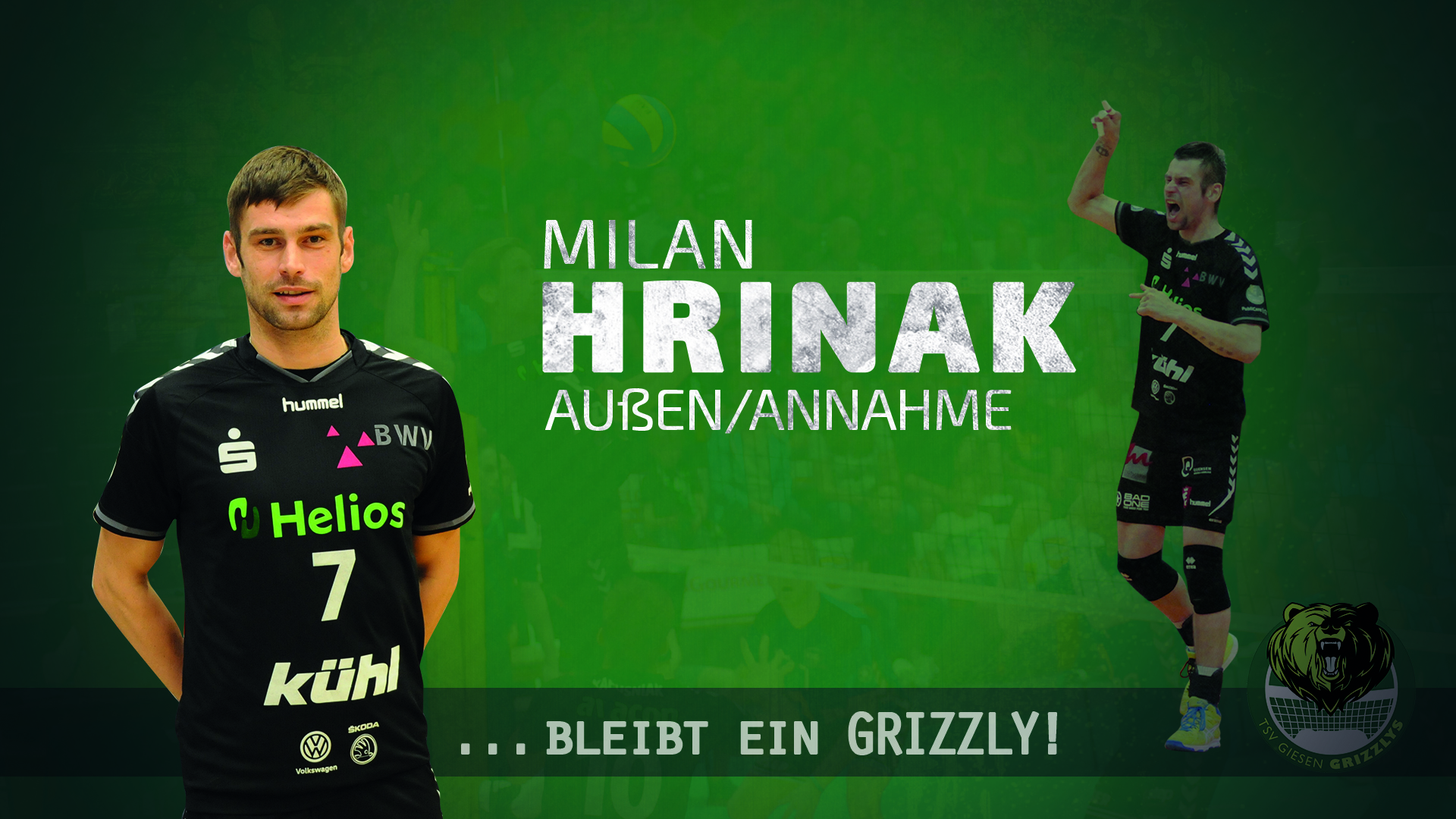 Die Helios GRIZZLYS Giesen können die nächste Vertragsverlängerung bekannt geben. Mit Außenangreifer Milan Hrinak verlängert bereits der sechste Spieler der Helios GRIZZLYS aus der vergangenen Saison seinen Vertrag für das Projekt 1. Bundesliga. Nach den Vertragsverlängerungen mit Marius Appel und Maximilian Ströbl setzen die Kaderverantwortlichen um den Sportlichen Leiter Sascha Kucera und GRIZZLYS-Trainer Itamar Stein auf der Position Annahme/Außen somit auf Kontinuität.