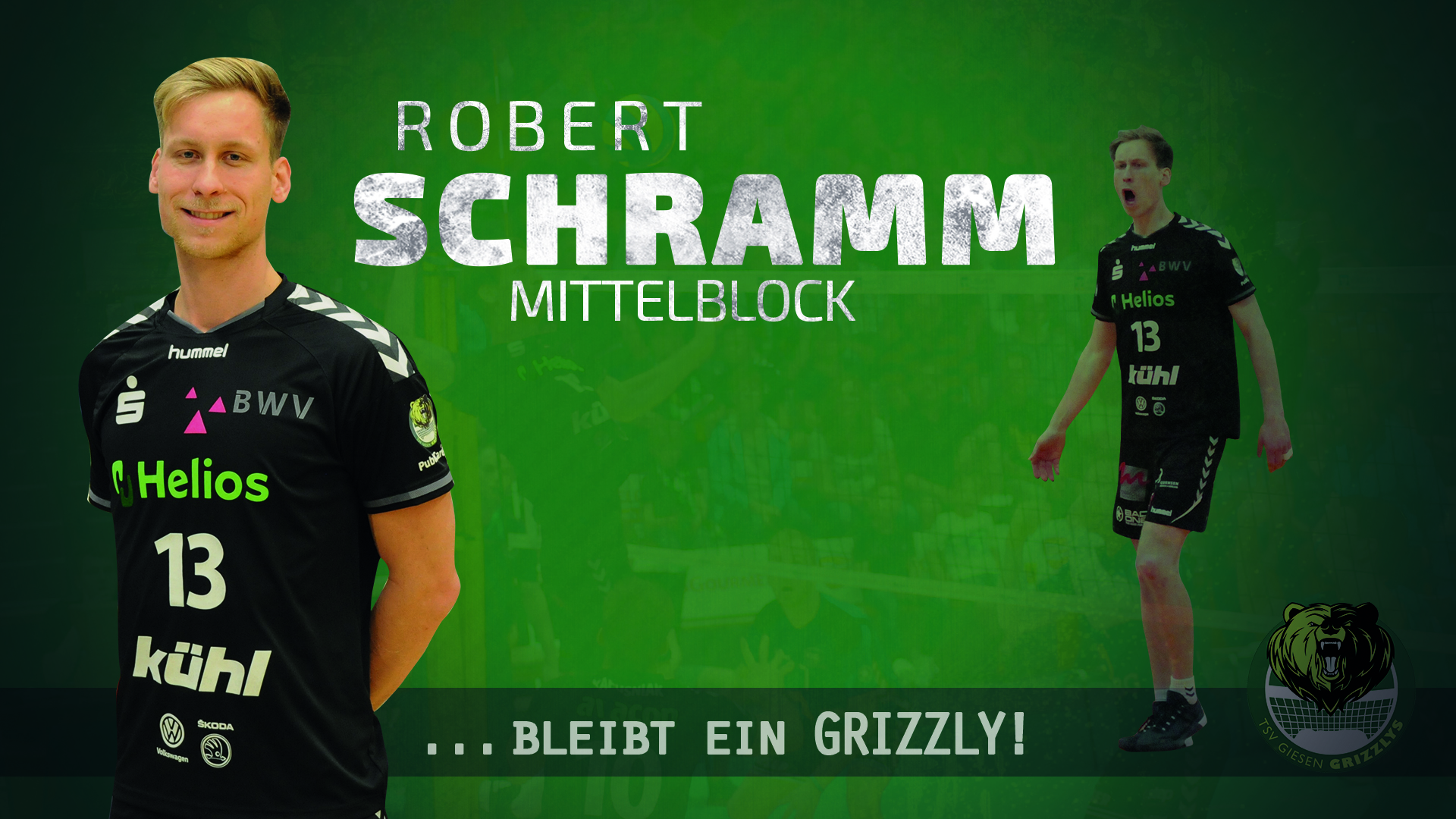 Die Helios GRIZZLYS Giesen haben die nächste Vertragsverlängerung zu vermelden. Mit Mittelblocker Robert Schramm verlängert nach den Young-Grizzlys André Illmer und Maxi Ströbl und Kapitän Hauke Wagner ein weiterer Leistungsträger der vergangenen Saison seinen den Vertrag.