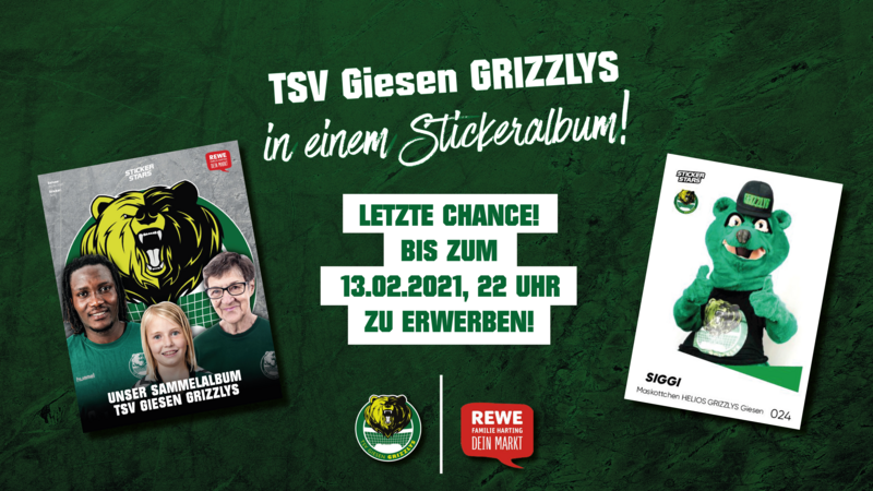 Noch in dieser Woche endet der Verkauf unserer GRIZZLYS Hefte & Sticker von StickerStars. Nutzt also gerne noch die Gelegenheit, um bei Rewe Familie Harting vorbeizuschauen.