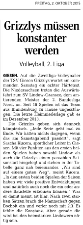 Härtetest. Sie treten die Auswärtsfahrt zum SV Lindow-Gransee an, dem amtierenden Meister der 2. Volleyball Bundesliga Nord, an. Seit 18 Spielen ist das Team aus Brandenburg zu Hause bereits ungeschlagen. Die letzte Heimniederlage gab es im Dezember 2013.