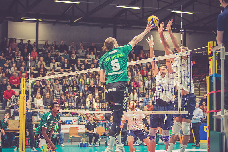 Im zweiten Satz erhöhten die GRIZZLYS den Druck durch Aufschlag und Angriff und provozierten so den ein oder anderen Fehler der Dürener, die jedoch weiterhin mit platzierten Aufschlägen und einem variablen Angriffsspiel brillierten. Gerade in Block und Abwehr fanden die GRIZZLYS kein entsprechendes Gegenmittel und so konnte der zweite Durchgang ebenfalls nicht gewonnen werden.
