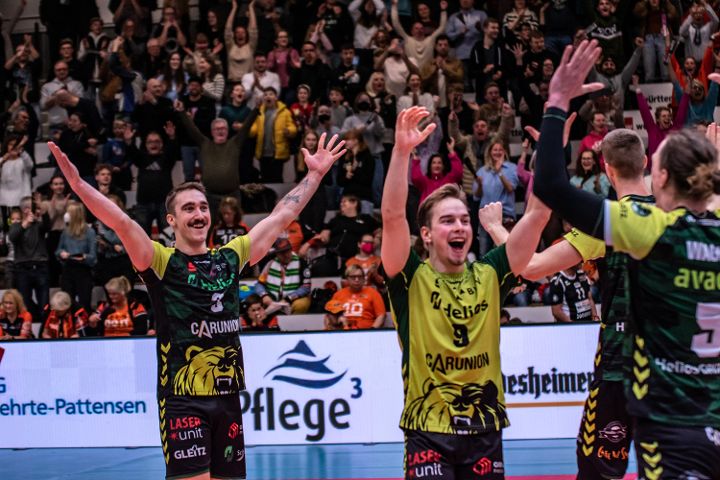 Nach dem gestrigen Sensationserfolg gegen die BR Volleys gab es für die Zuschauer in der Volksbank-Arena und am Livestream noch eine exklusive Neuigkeit, verkündet von Arenasprecher Mike Münkel.