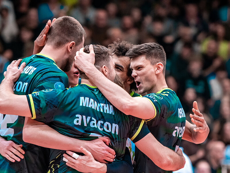 Die GRIZZLYS kamen gut ins Spiel und konnten sich im 1. Satz bis zum 8:5 leicht absetzen. Die folgende Auszeit von SVG-Coach Hübner verpuffte wirkungslos. Während die GRIZZLYS in der folgenden Phase im Block immer wieder punkteten, zeigte sich Lüneburg wie erwartet stark in der Feldabwehr. Beim Stand von 17:13 für die GRIZZLYS zeigte die von Hübner genommene weitere Auszeit Wirkung und die Lüneburger konnten über den 18:18-Ausgleich mit einer 19:20-Führung in die Crunchtime gehen. Darin wechselte die Führung mehrfach. Bei 24:23 blockte der Lüneburger Theo Mohwinkel den Angriff von GRIZZLY Mitch Ahyi und es ging in die Satzverlängerung. Bei 26:25 landete der Angriff der Lüneburger im Aus und sorgte so für die 1:0 Satzführung der GRIZZLYS.