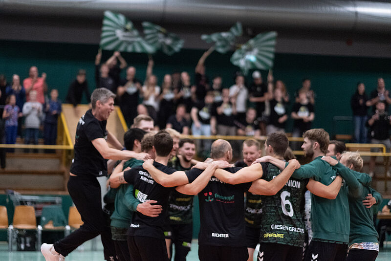 Die Volleyballer von Zweitligist TSV Giesen GRIZZLYS II haben nach dem Triumph im Pokal-Wettbewerb des Nordwestdeutschen Volleyball-Verbandes und dem damit verbundenen Einzugin das Ausscheidungsmatch für die Qualifikation zur 1. Hauptrunde im DVV-Pokal-Wettbewerb am 27. Oktober vor heimischem Publikum gegen den SV Warnemündenur wenig Zeit zum Luft holen. Denn bereits am kommenden Wochenende steht der nächste Meisterschafts-Spieltag an. Und dieser hat es in sich, müssen die Mannen von Trainer Marin Richter doch gleich zwei Mal ran. Zunächst steht am Samstag, 19.Oktober, um 20 Uhr in der heimischen Schacht-Arena das Spiel gegen VV HumannEssen an, tags darauf empfangen die Giesener um 16 Uhr die VC-Juniors ausFrankfurt. Trotz der nur kurzen Regenerationsphase nach dem Pokal-Wochenende gibt sich Coach Richter kampfeslustig und optimistisch, schließlich hat sein Team am vergangenen Wochenende mit den Triumphen in den Pokal-Matches gegen den FC Schüttorf 09 (2:1) und die SF America Unlimited Volleys Aligse (2:0) reichlich Selbstvertrauen getankt und sich als eingespielte Einheit erwiesen. Dementsprechend gehen Spieler und Trainer die Doppel-Aufgabe in der Meisterschaft mit breiter Brust an. „Vom Papier her sind wir in beiden Partien Favorit und nehmen diese Rolle auch gerne an. Doch Frankfurt hat für die Vorbereitungbislang nicht eine so große Rolle in meinen Gedankenspielen gespielt. Das ist ein Junioren-Team aus dem Leistungsinternat der Frankfurter, das auf dem letzten Platzliegt. Trotzdem sollte man sie nicht unterschätzen“, sagt Richter. Sein Fokus ist eher auf die vorherige Partie gegen VV Humann Essen gerichtet. „In der vergangenen Spielzeit haben wir in Essen nur knapp mit 3:2 Sätzen gewonnen, im Rückspiel dann aber souverän drei Punkte geholt. Bei einer konzentrierten Leistung sollten wir das auch am Samstag wieder hinbekommen, zumal wir zuhausespielen“, hofft Richter auch wieder auf die lautstarke Unterstützung der Fans. Der Coach wollte zwar das Wort „Pflichtsiege“ als Ziel für die beiden Begegnungen nicht in den Mund nehmen, doch stellte er gleichzeitig klar, dass man mit den gestiegenen Ansprüchen und Erwartungshaltungen nach dem erfolgreichen Abschneiden in der vergangenen Spielzeit sich gegen Mannschaften aus dem Tabellenkeller keine Ausrutscher leisten sollte. Bis auf den verletzten Zuspieler Paul Klimm haben Richter und sein Trainerteam für den Doppelspieltag die stärkste Formation am Start, die versuchen will, mit zwei Siegen in der Tabelle einen weiteren Schritt nach vorn zu machen, um dann eine Woche später am 27. Oktober im Pokal-Ausscheidungsmatch gegen Liga-Konkurrent Warnemünde zu neuen Großtaten auszuholen. Denn nach diesem Wochenende heißt es logischerweise: Nach dem Punktspielbetrieb ist vor dem Pokal-Wettbewerb.