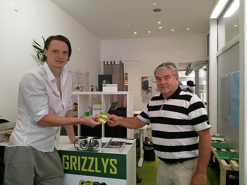 Aber auch rund um die Mannschaft geht es bei den GRIZZLYS weiter voran. In dieser Woche startete der offizielle Kartenverkauf. In den bekannten Vorverkaufsstellen und in der GRIZZLY-Geschäftsstelle in der Schuhstraße sind nun Tickets für alle Saisonspiele, sowie Dauerkarten aller Kategorien erhältlich. Bereits gestern bekam Geschäftsstellenleiterin und Marketingmanagerin der GRIZZLYs, Vanessa Persson, Besuch. Neben GRIZZLY-Kapitän Hauke Wagner, der nach dem Training kurz vorbei geschaut hatte holte sich Berthold Klemperer, Manager der Drittliga-Volleyballerinnen und Volleyballer beim MTV 48 Hildesheim, seine VIP-Dauerkarten für die kommende Saison ab. Die Giesen GRIZZLYS freuen sich über diese Unterstützung und erwarten für den Saisonstart eine beeindruckende Kulisse, mit vielen Volleyballexperten auf den Tribünen.