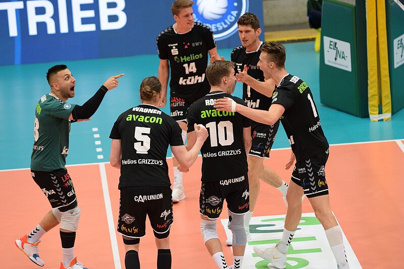 Der Tiebreak startete ausgeglichen, doch dann brachte der spätere MVP des Spiels, Stijn van Tilburg, die Helios GRIZZLYS durch seine starken Aufschläge mit 7:4 in Führung. Nach zwei unglücklichen Aktionen der Gastgeber kam Düren dann noch einmal auf einen Punkt heran, bevor auch Jacob Kern mit druckvollen Aufschlägen für die GRIZZLYS punktete. Beim Stand von 9:6 nutzen die powervolleys die Möglichkeit für eine Auszeit und konnten anschließend drei Punkte in Folge verbuchen. Doch die Giesener Volleyballer blieben weiterhin konzentriert und erkämpften sich in der finalen Phase des Entscheidungssatzes Punkt um Punkt. Nach dem zwischenzeitlichen 10:10 beendeten sie die Partie, bis zum Ende eingefangen von den TV-Kameras, mit 15:10 im fünften Satz.