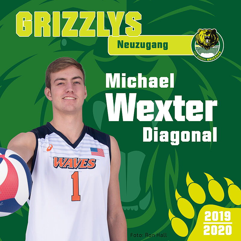 Die Helios GRIZZLYS Giesen haben einen weiteren nordamerikanischen Nachwuchsspieler für die kommende Saison verpflichtet. Nach dem kanadischen Mittelblocker John Moate, konnte nun der 21-jährige US-Amerikaner Michael Wexter nach Niedersachsen geholt werden. In den letzten drei Spielzeiten spielte der Diagonalangreifer für die Pepperdine Universität (Malibu) und spielte für die Pepperdine Waves. Er stammt aus einer sehr sportlichen Familie, sein Vater Randy spielte Golf für die Northern Iowa University und trainiert derzeit die Golf-Mannschaften der Purdue University Calumet (Indiana). Wexter hat drei Geschwister, Bruder Connor spielte ebenfalls Volleyball, Schwester Jenna ist Stabhochspringerin.