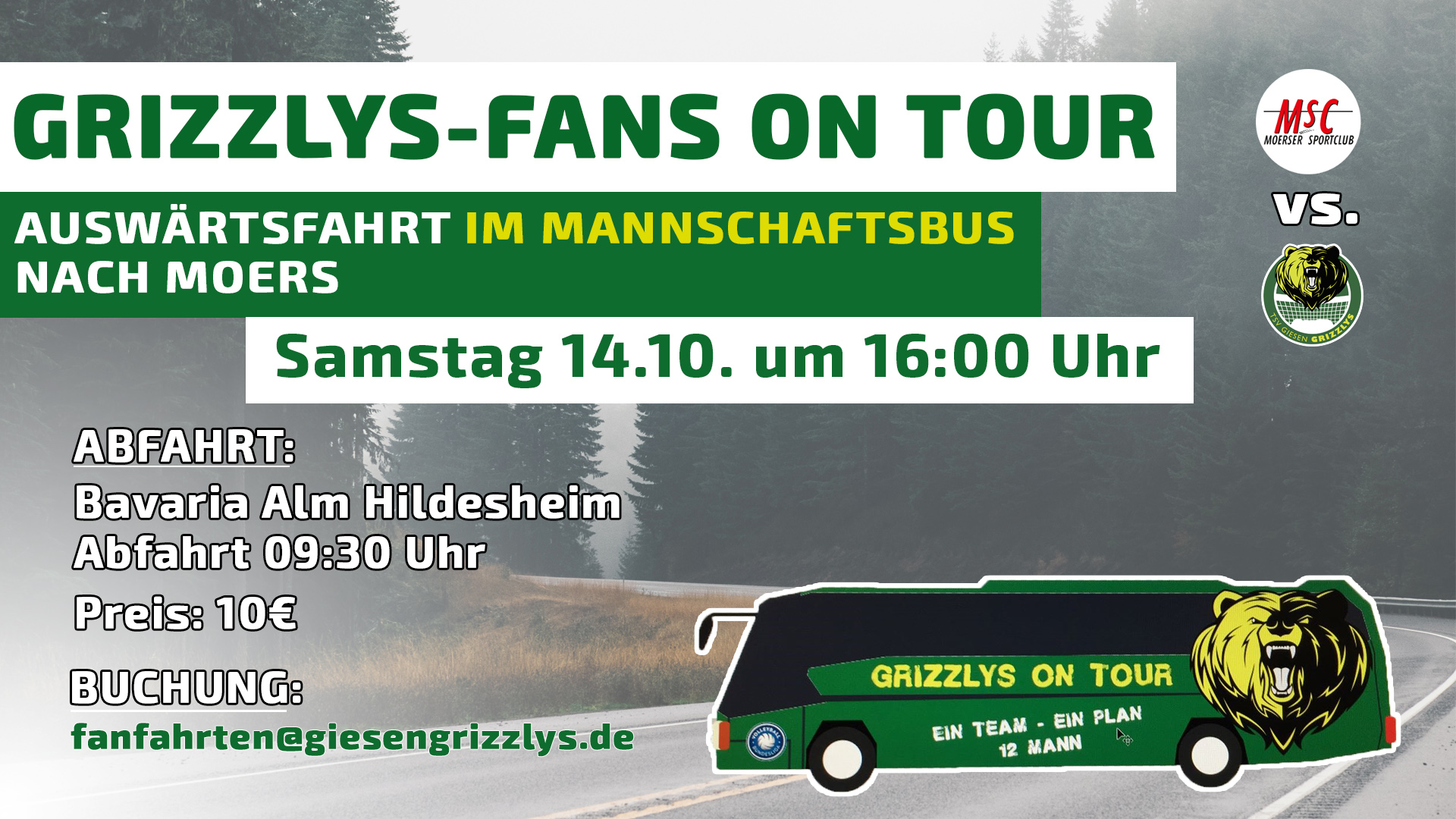 Einige Fans können unsere HELIOS GRIZZLYS auch wieder im Mannschaftsbus begleiten. Es sind noch Plätze frei. Abfahrt nach Moers ist um 9:30Uhr an der Bavaria Alm in Hildesheim. Die Fahrt kostet 10€ pro Person (exklusive Eintritt vor Ort). Bei Interesse anmelden unter pr@giesengrizzlys.de. Wer nicht direkt vor Ort dabei sein kann, für den gibt es die Möglichkeit das Spiel am Liveticker zu verfolgen (http://www.vbl-ticker.de/2blnm).