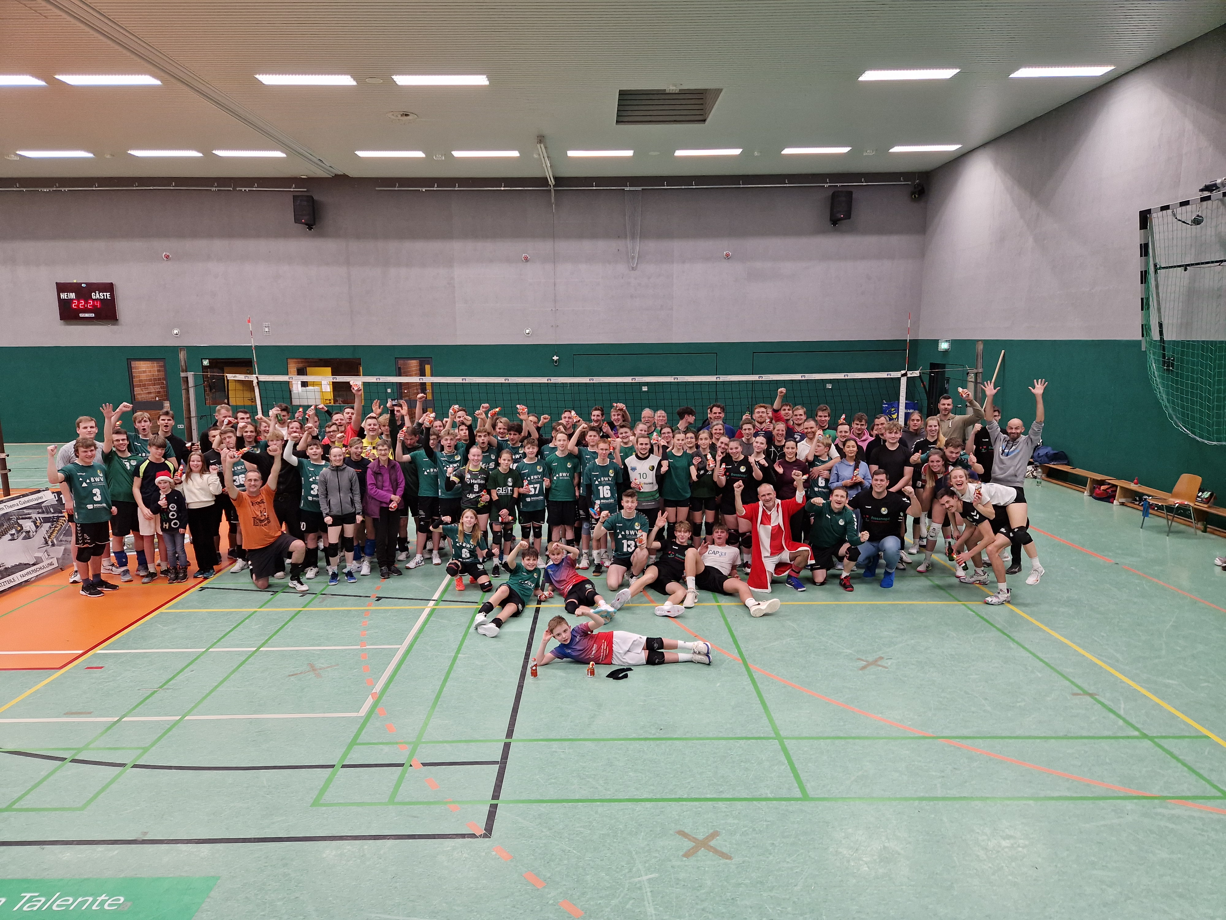 Auch viele Zuschauer fanden den Weg in die Schachtarena und freuten sich über Vielzahl bekannter Gesichter. Unsere Abteilungsleiter Dominik Jennati und Claas Blume sowie Turnierleiter Joerg Lehmann ehrten am Ende nicht nur die Gewinner, sondern mit Marianne Rüth auch die erfahrenste Spielerin. Zudem gab es seitens der Verantwortlichen der Volleyballabteilung als Dankeschön für die Teilnahme am Turnier für jeden Spieler und jede Spielerin einen Schokoladenweihnachtsmann.