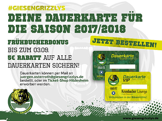Verlängerung der Dauerkarten-Sonderaktion der GRIZZLYS zum Saisonstart