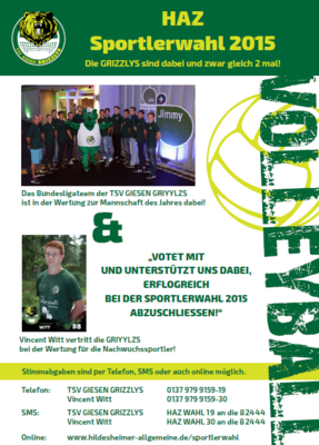 Auch in diesem Jahr findet wieder die HiAZ Sportlerwahl statt und wir sind gleich zweimal nominiert.