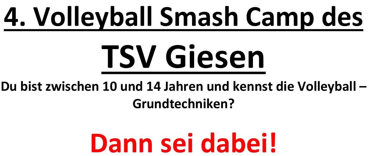 In den Herbstferien ist es wieder soweit, die Volleyballabteilung des TSV Giesen richtet das 4. Volleyball Smash-Camp aus. Dieses richtet sich an…
