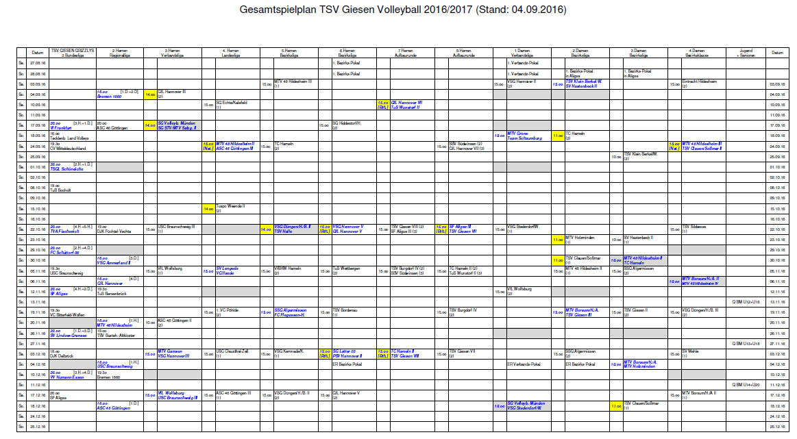 Ab sofort findet ihr auf unserer Seite den aktualisierten Gesamtspielplan für die neue Saison 2016/2017. Darin seht ihr, wann Ihr, als auch alle…