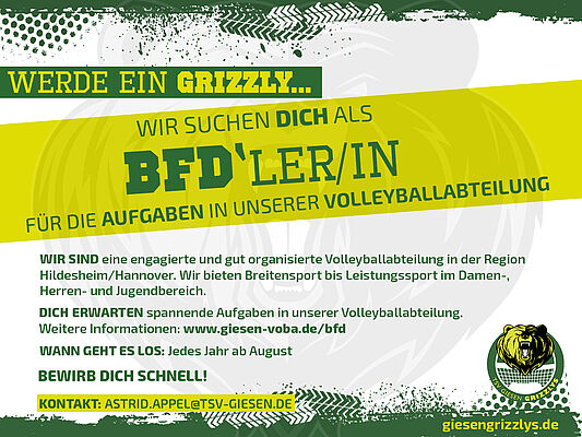 Unser Vorstand sucht noch zwei BUFDIS für die neue Saison (ab August 2019).